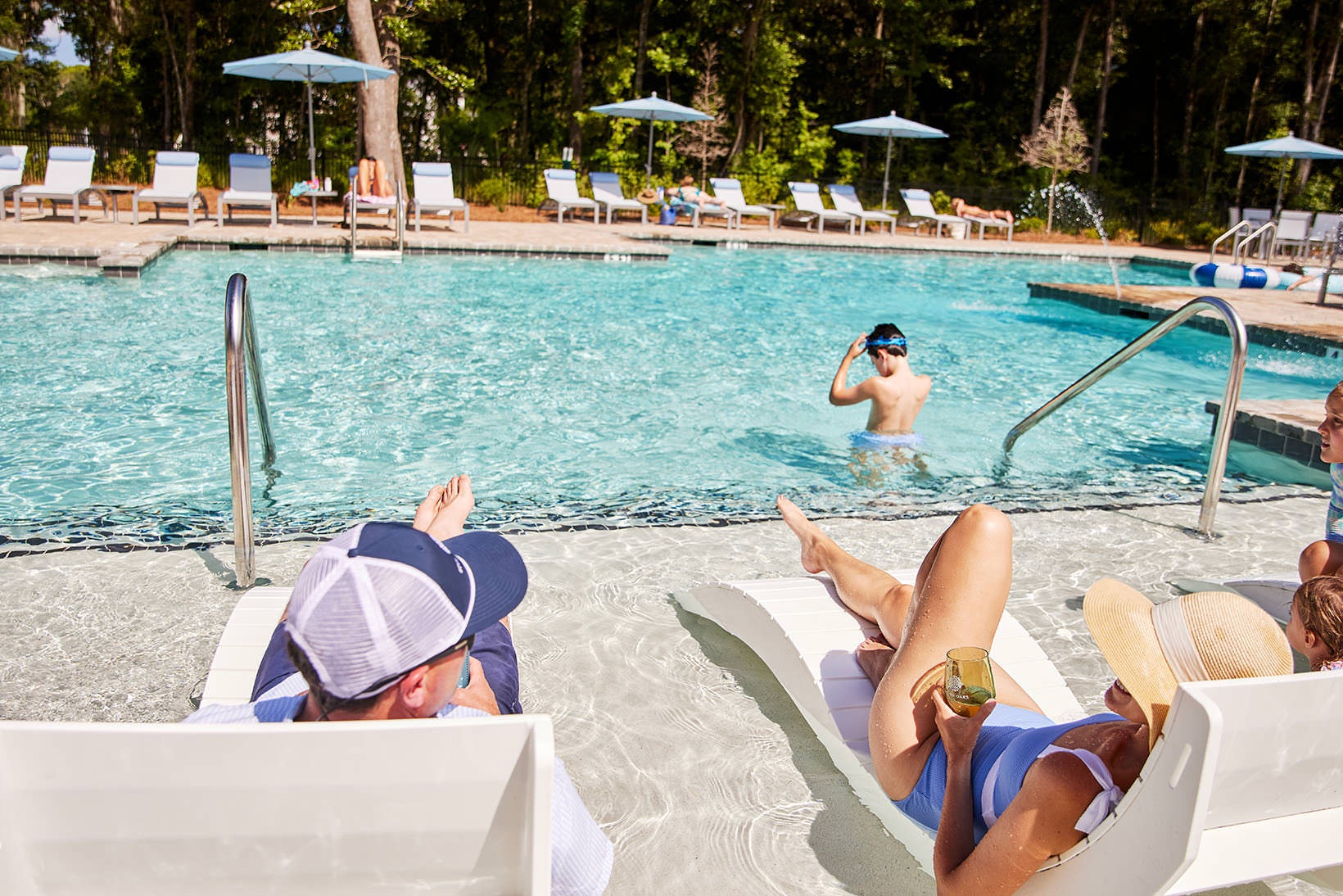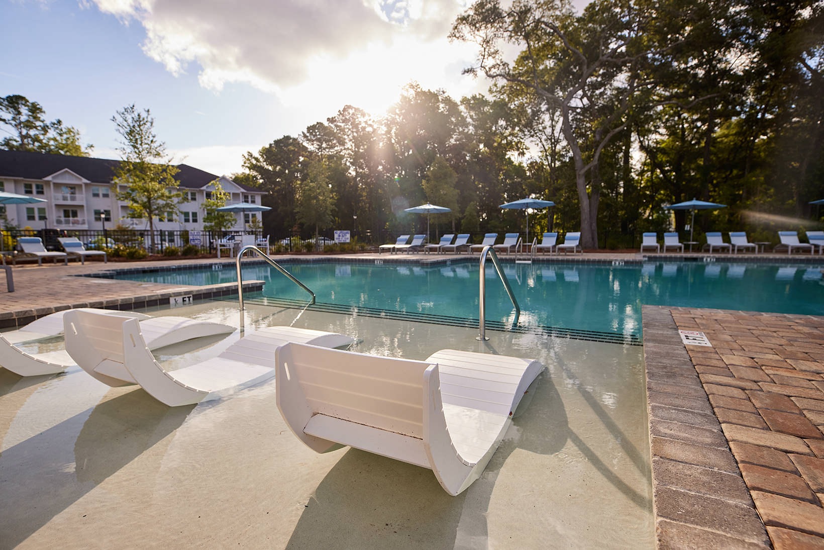 • Resort-style swimming pool with lounge seating at Stono Oaks